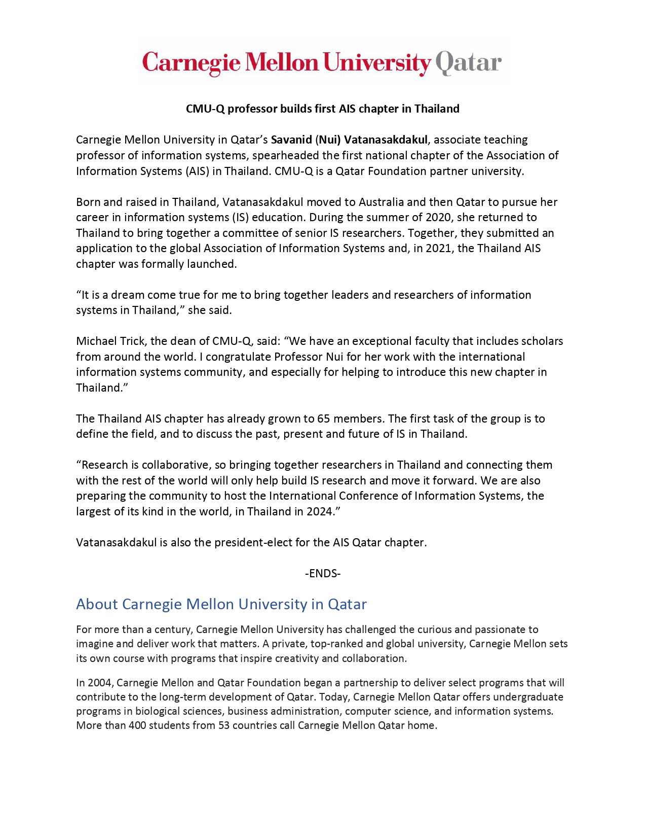 Royal Thai Embassy In Doha On Twitter Royal Thai Embassy Doha Congratulates Dr Savanid Nui Vatanasakdakul Thai Associate Teaching Professor Of Information Systems Carnegiemellonq For Her Success In Spearheading The Establishment Of